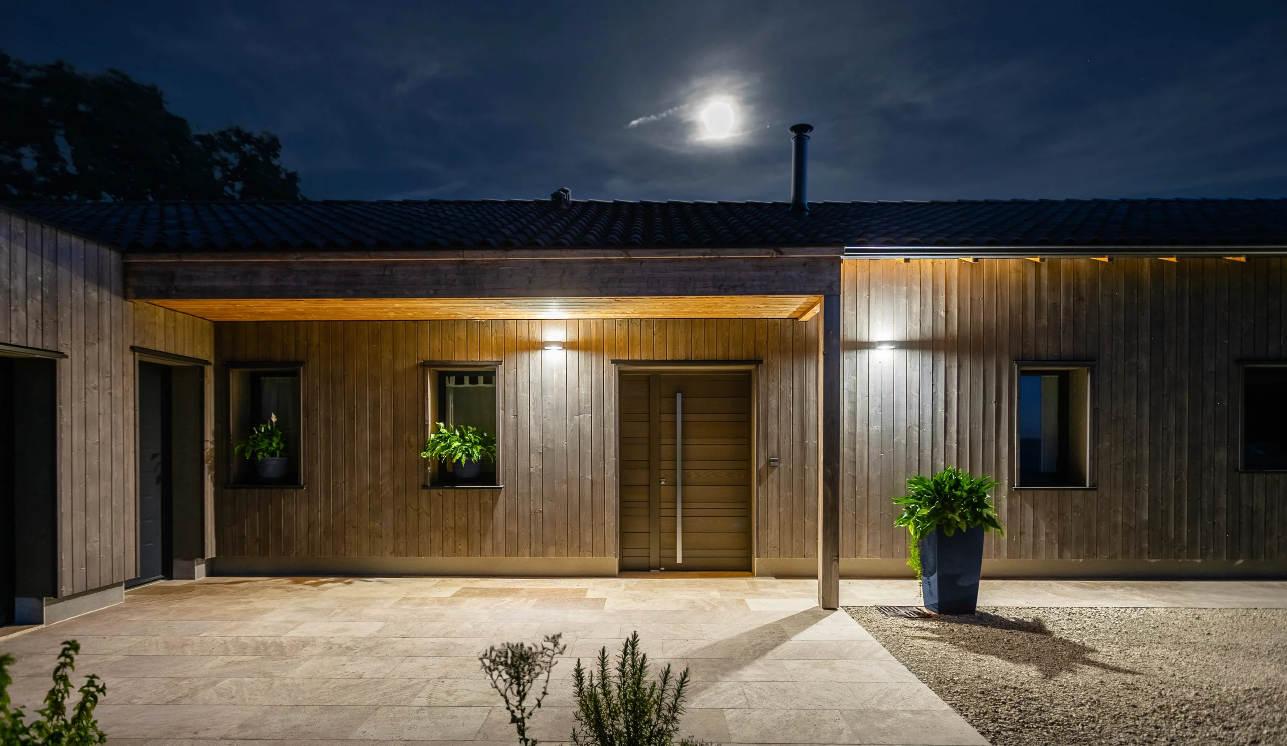 Modèle Nativ 24 Fusion Shou Sugi Ban, en bois Accoya®, avec bandeau horizontal exclusif en inox brossé